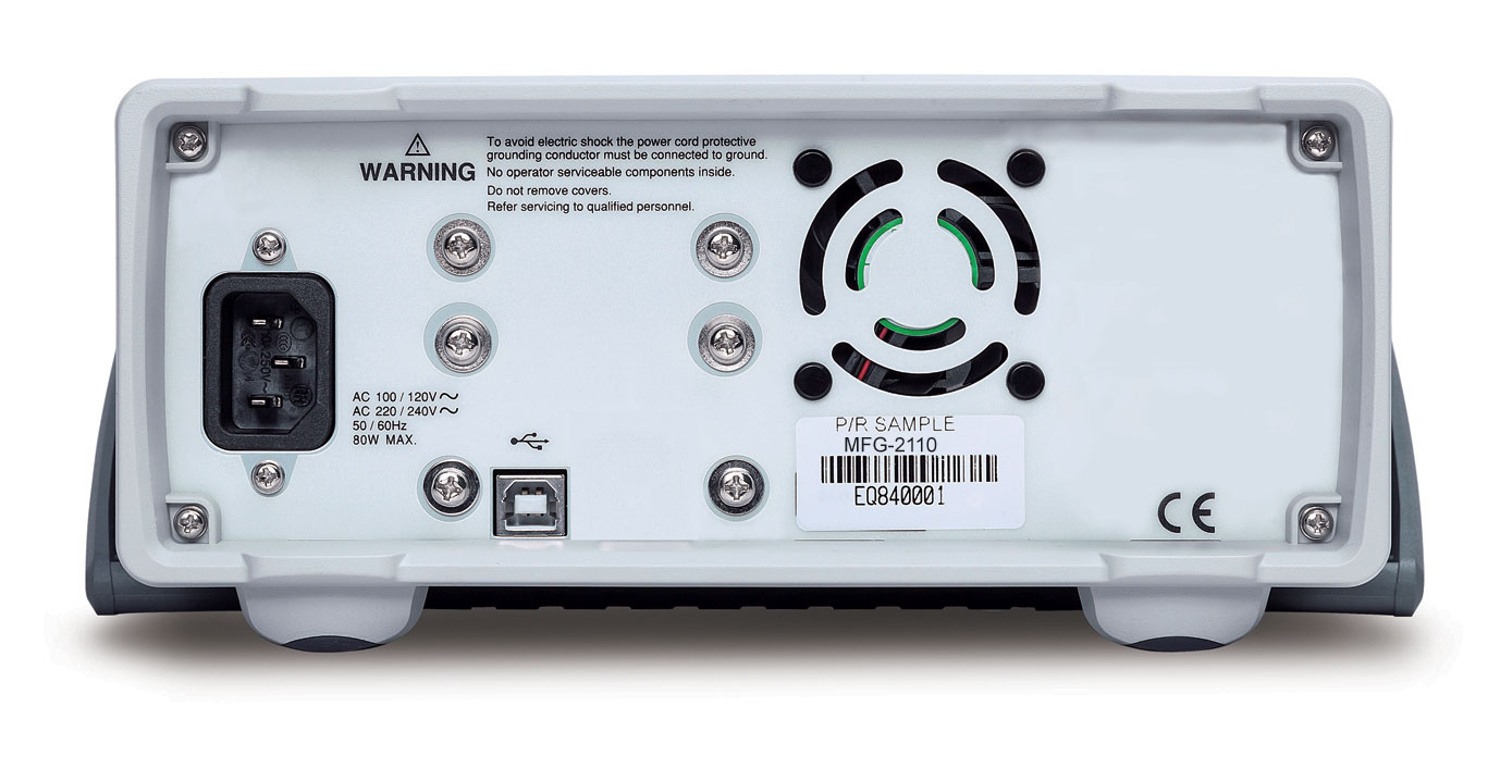 - True Point by Point Output Arbitrary Waveform Function: MFG-2220HM Sample Rate: 250MSa/s, Repetition Rate: 125MHz; Other models Sample Rate: 200MSa/s, Repetition Rate: 100MHz, 14-bit Resolution, 16k Points Memory Depth