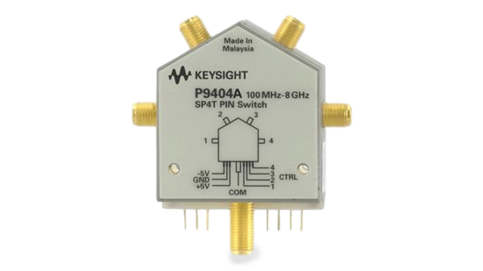 The Keysight P9404A PIN solid state switch maximizes your operating frequency range from 100 MHz to 8 GHz by providing superior performance in terms of isolation, insertion loss, and return loss. The P9404A PIN solid state switch is particularly suitable for high-speed RF and microwave switching applications such as switch matrixes in instrumentation, communications, and radar. These switches provide ultra-fast switching speed to increase throughput in manufacturing.