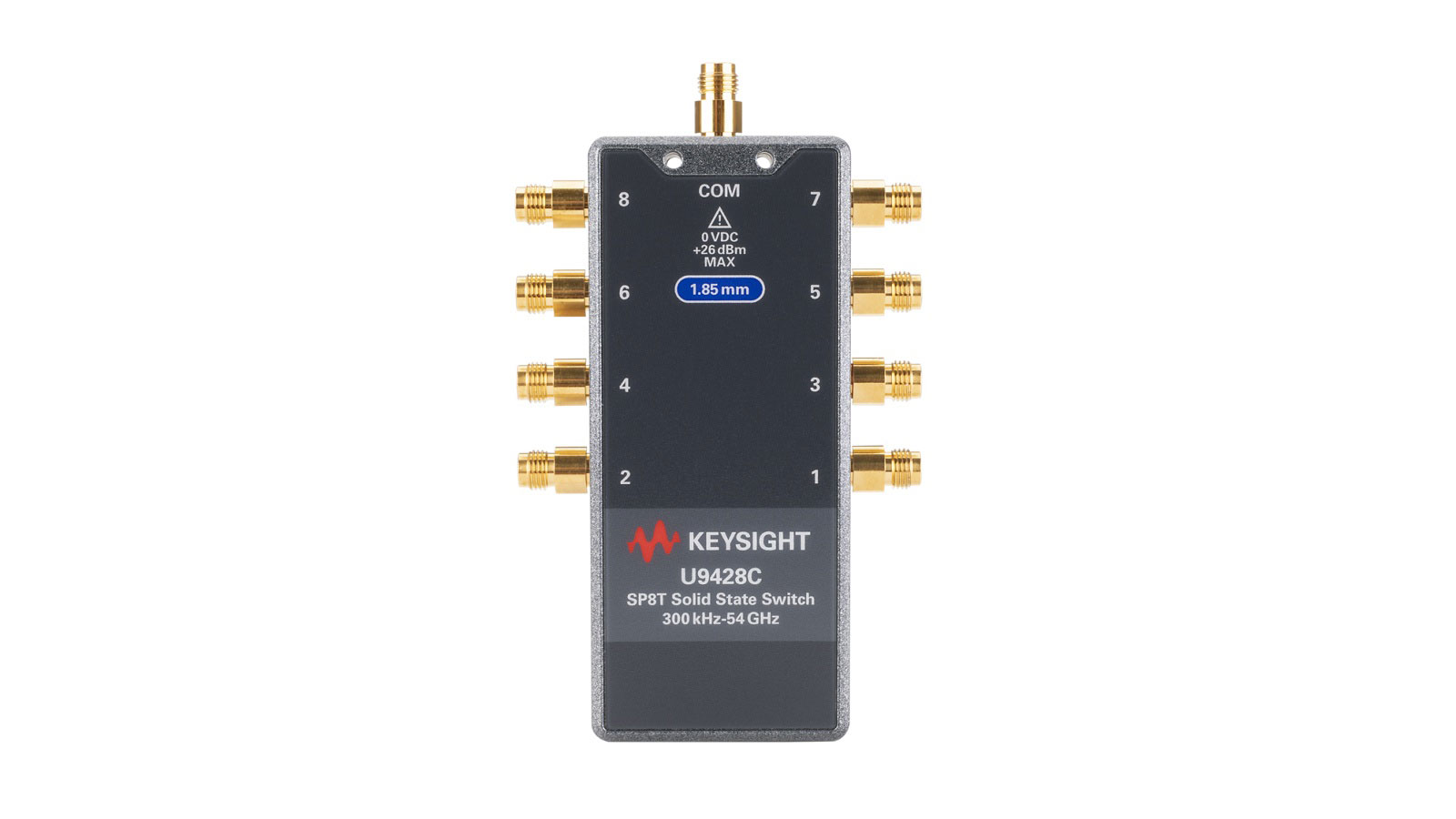 The U9424C FET solid state switches offer superior performance in terms of isolation and video leakage across a broad operating frequency range of up to 54 GHz. The SP8T switch is used to increase system flexibility and simplicity and is easily controlled with a USB connection; that comes with the flexibility of multiport configuration connectivity port PXIe and USB VNA or through a soldering connector option.