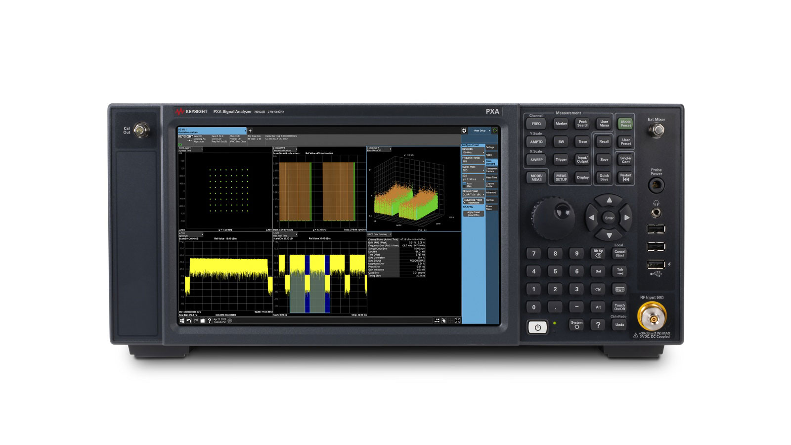 Built to address high-bandwidth applications like 5G carrier aggregation and amplifier test, 802.11ax/be, satellite, radar, and electronic warfare (EW), Keysight’ N9032B PXA X-Series signal analyzer delivers the widest analysis bandwidth in its class. Our measurement software applications help you optimize your most complex designs and stay up to date on the latest requirements. Get the best swept displayed average noise level (DANL), error vector magnitude (EVM) performance, and sensitivity in a compact 4U-high form factor.